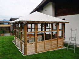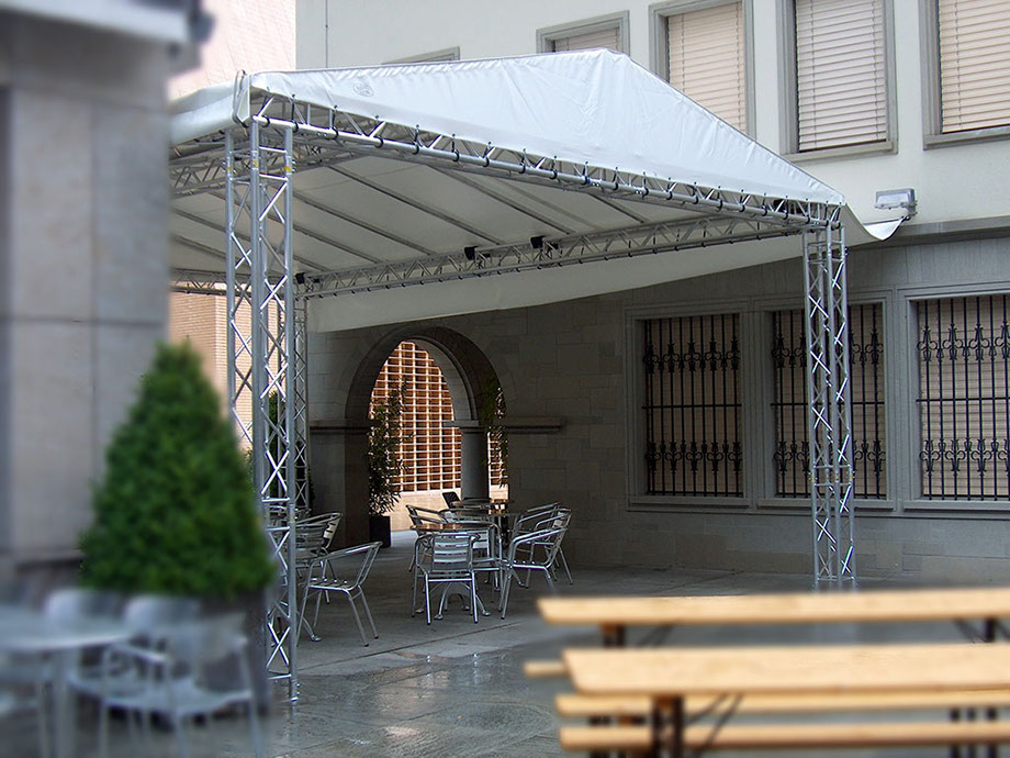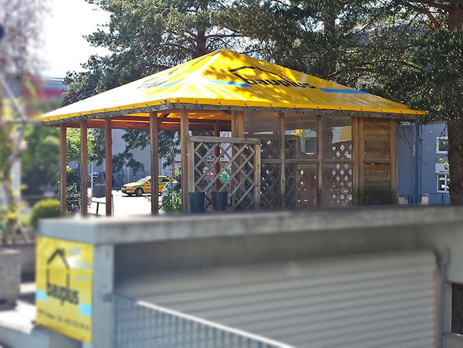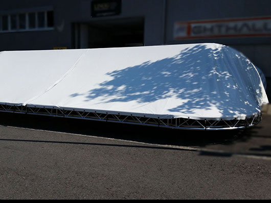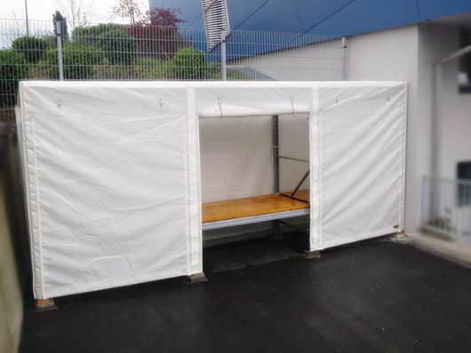 Falls die Konstruktion des Gestänges vorhanden ist, können wir die Zelthaut aus hochwertigem Blachenmaterial herstellen.